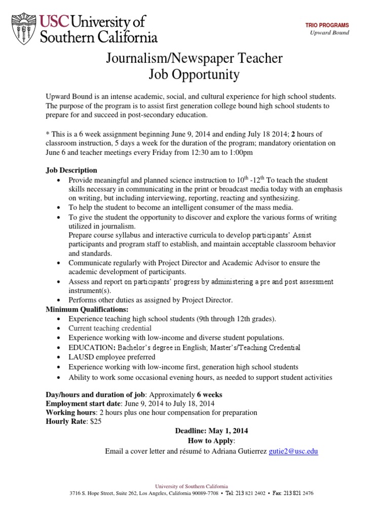 Journalism Newspaper Teacher Job Opportunity Current Teaching